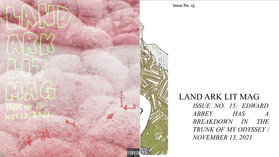 Now, while I’m out having a good time, feast your wild appetites on this here issue, starring a story about birds and a hotel in Arizona’s high country, some repetition poetry, and an interview conducted by Luhrmann Moose (new contributor) with Tappamiex Montaigne (sycophant).
